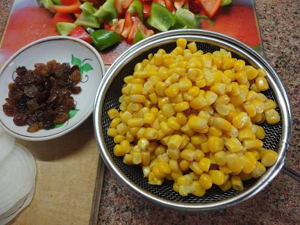 Кукурузу откинуть на дуршлаг. Я указала чистый вес продукта без жидкости.