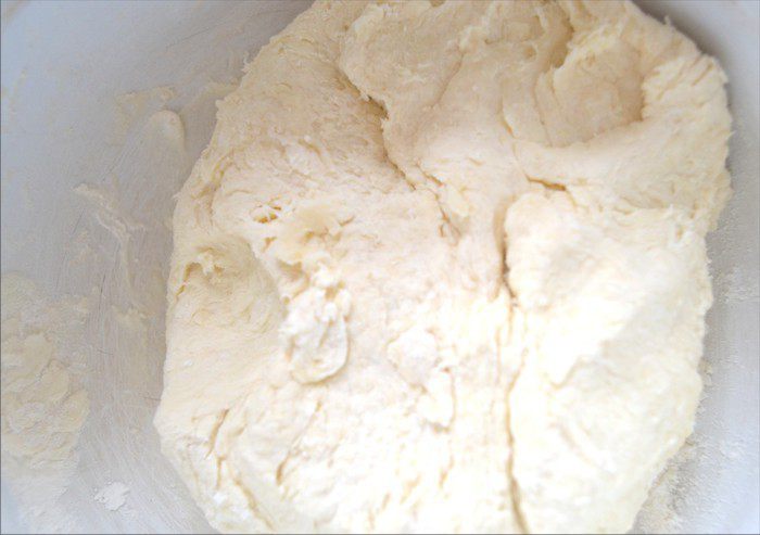 Замесить очень пластичное, мягкое и нежное тесто из маргарина, муки, разрыхлителя и сметаны. Я не добавляю соль, пресное тесто лучше подчеркивает вкус сыра и лука.