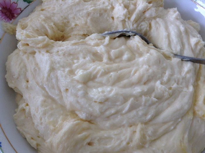 Добавить масло (его надо растопить), муку, разрыхлитель и творог.