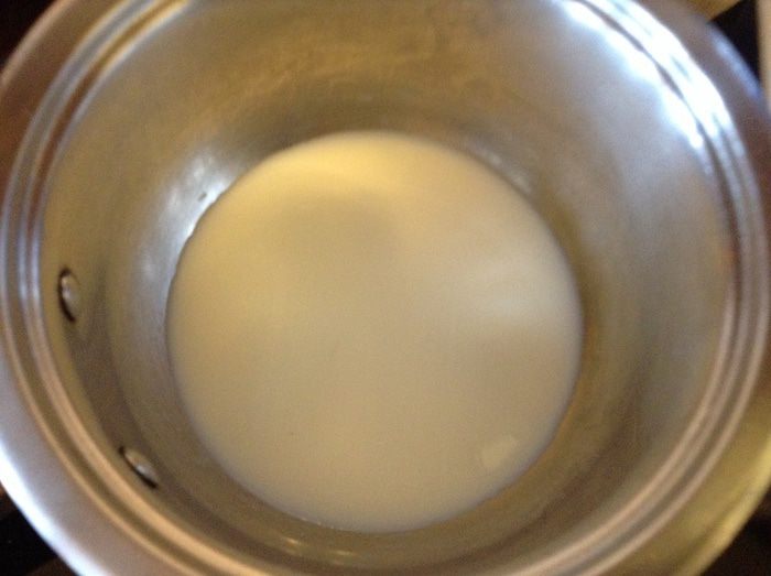Для заварного крема молоко прогреть в сотейнике молоко с ванилью.