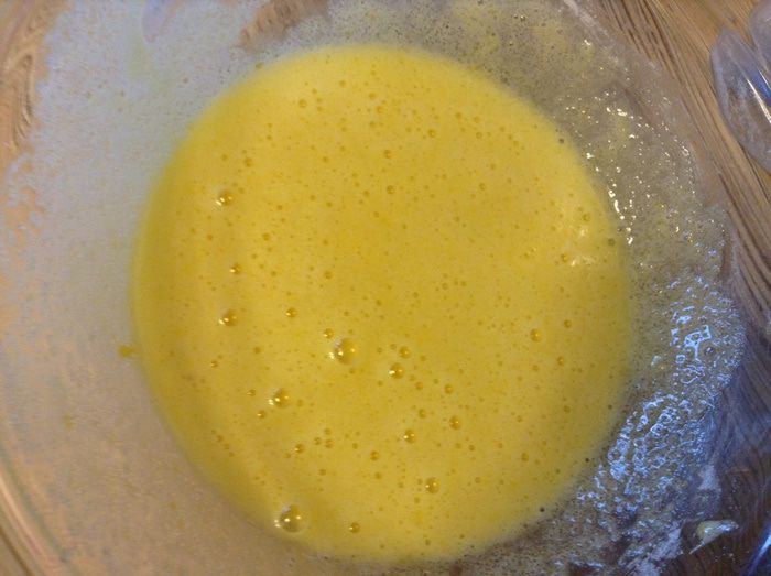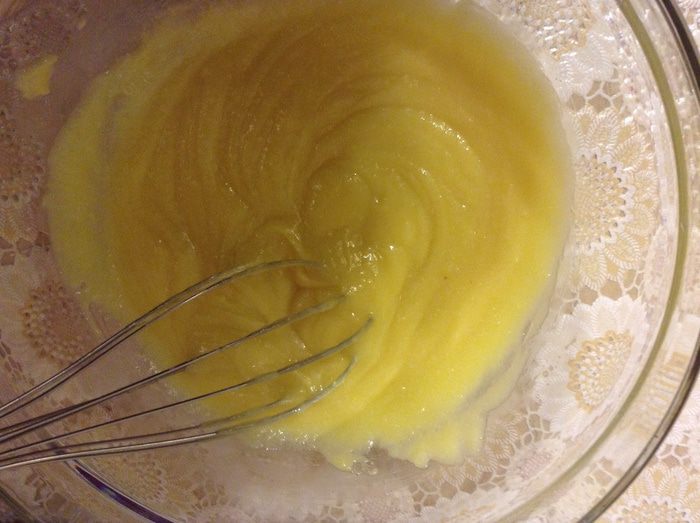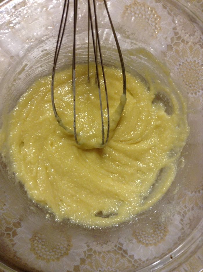 Соедините яйцо, сахар и крахмал.