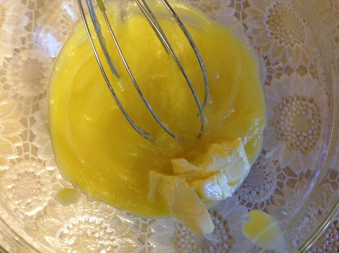 Вмешать заварной крем в миндальный.