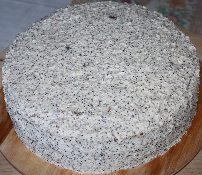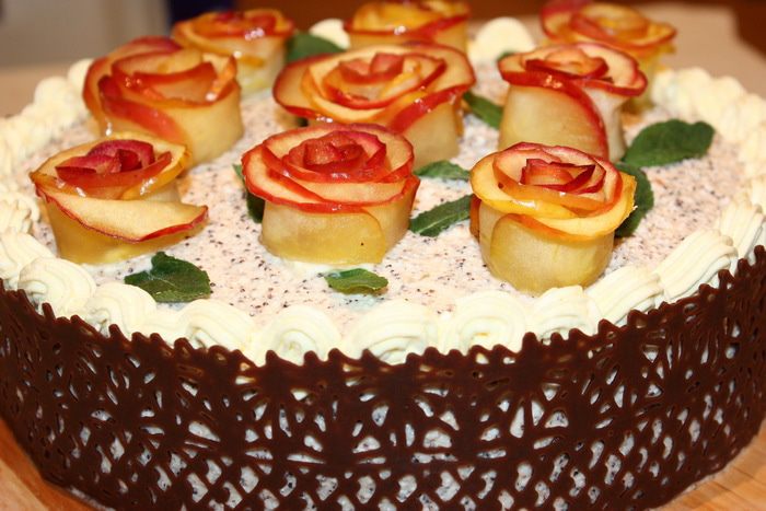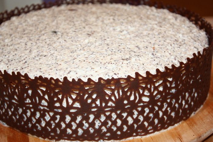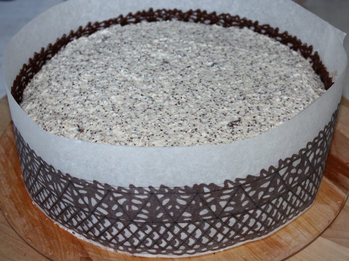 Бисквит. Белки взбиваем пышную пену до мягких пиков, чтобы кончик взбитых белков немного загибался. Такое состояния взбитого белка еще называют «птичий клюв». Желтки взбиваем с сахаром, пока они не побелеют и сахар полностью не раствориться. Затем извлекаем семена ванили из стручка и добавляем к желткам. Муку просеиваем, добавляем к желткам и взбиваем. Белки осторожно соединяем с желтками при помощи лопатки. Делим тесто на три части, или выпекаем одним коржом (потом разрезать на коржи) и выпекаем бисквиты при t=160°C 30-40 минут, в зависимости от вашей духовки, диаметр формы = 24 см. Степень готовности проверяем при помощи деревянной шпажки. Прокалываем корж до самого дна шпажкой. Если она сухая – бисквит готов. Остужаем и разрезаем на три коржа.