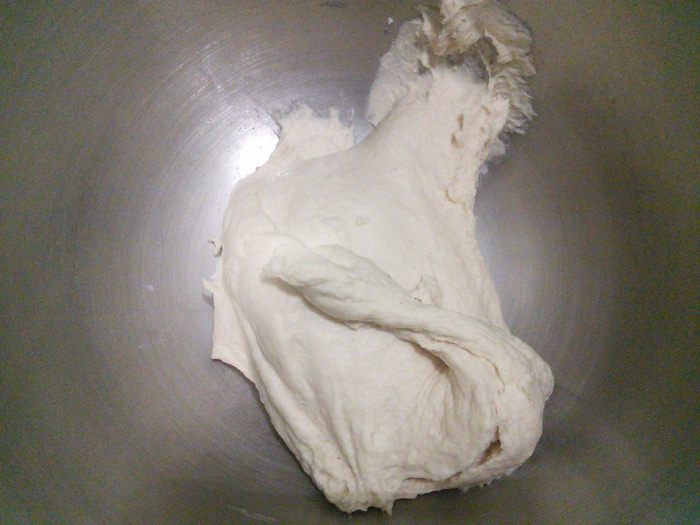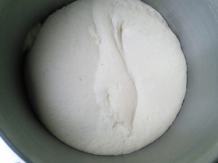 Подошедшее тесто ещё разочек интенсивно вымесим.