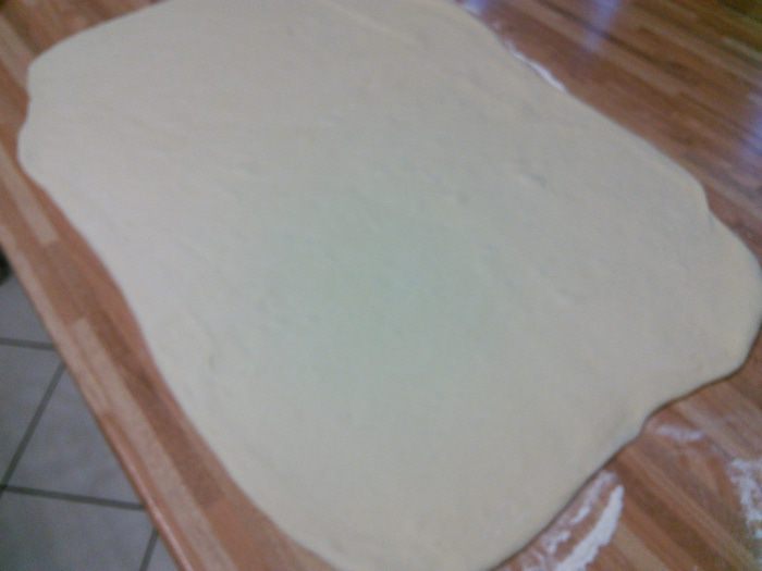 И раскатаем на посыпанной мукой поверхности в прямоугольник 30*60 см.