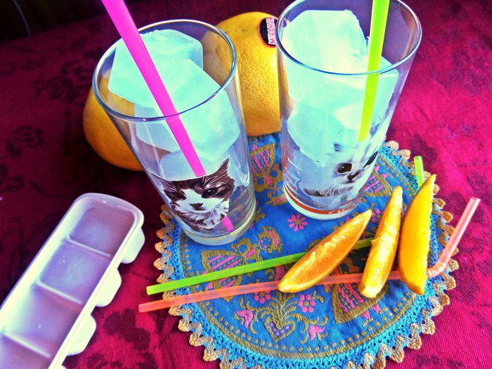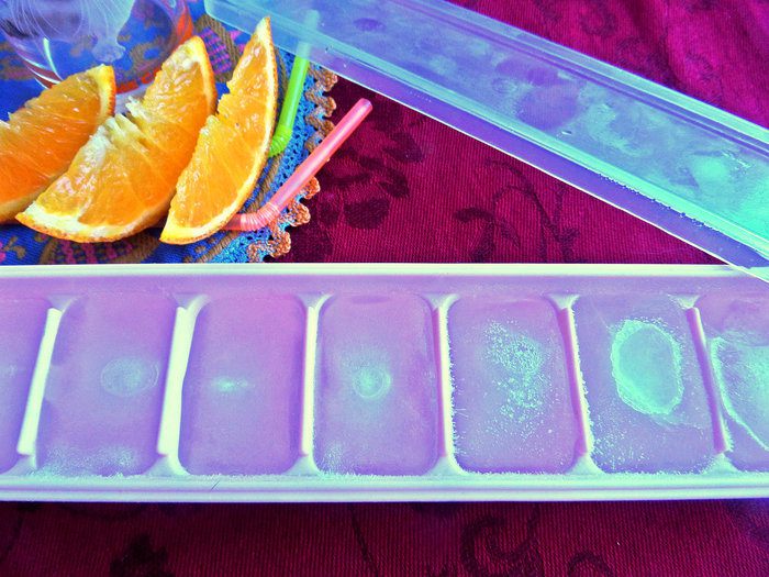 Лёд летом у всех, думаю, найдётся в морозилке. Эти формочки с крышками очень удобные, привезены из России.