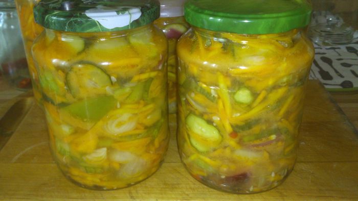 Огурцы переросли - добро пожаловать в салат, лук мелковат - вообще отлично, кладем целиком, морковка крупная - еще лучше, легче тереть)))