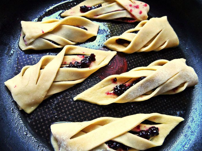 Затем накрываем внахлёст вторым краем, тоже фиксируем легко, чтобы печенье осталось воздушным.