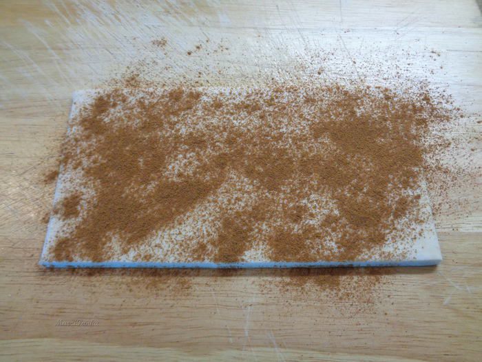Щедро посыпать каждый лист слоеного теста корицей. И втереть ее в тесто.