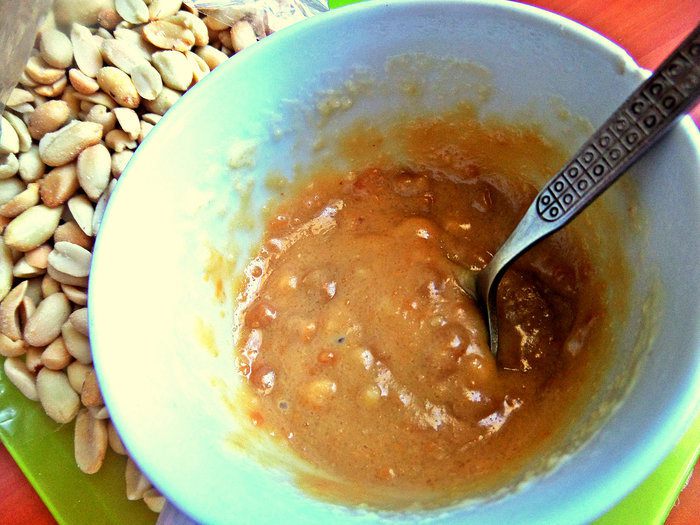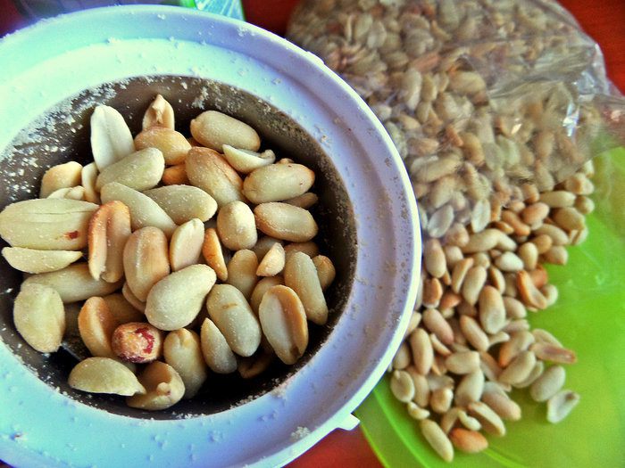 Арахис нужен очищенный и обжаренный, у меня куплен готовый.