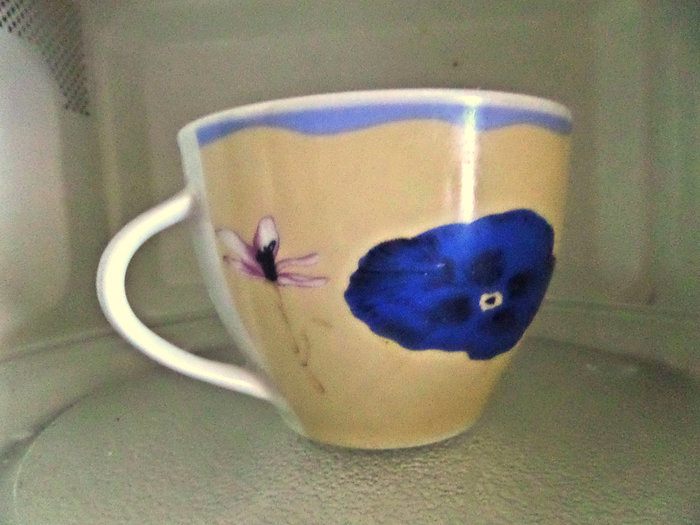 Ставим чашку в СВЧ для разогрева на минуту.