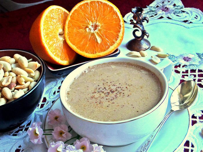 После пикантного кофе переходим к сладкому. Настоящий кофе-десерт получился в ходе моих экспериментов, густой, ореховый, а варёная сгущёнка придала карамельный аромат.