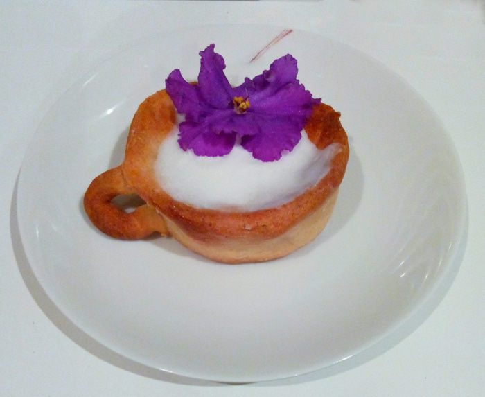 В кружку наливаем кофе, украшаем взбитыми сливками и фиалкой. Теперь самое время побаловать себя ароматным кофе в "сладкой кружке"! Приятного аппетита!