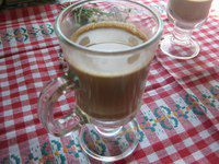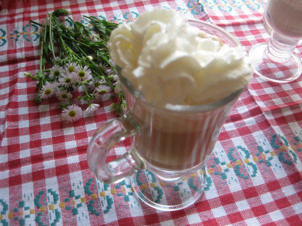 Молоко с кофе переливаем в бокал.