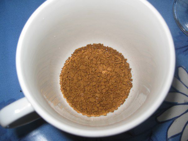 Насыпаем, отдельно, в чашку кофе.
