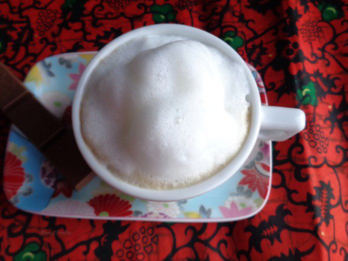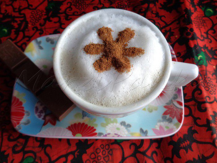 Украшаем корицей и присыпаем сверху сахаром. Можно сахар взбить с молоком. Я пью без сахара лично.