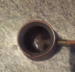 Прогреть турку. Насыпать кофе и залить кардамоновой водой (лучше ее подогреть еще раз немного).