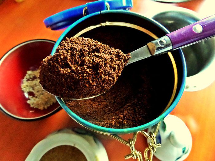 Берём чайную ложку кофе с горкой.