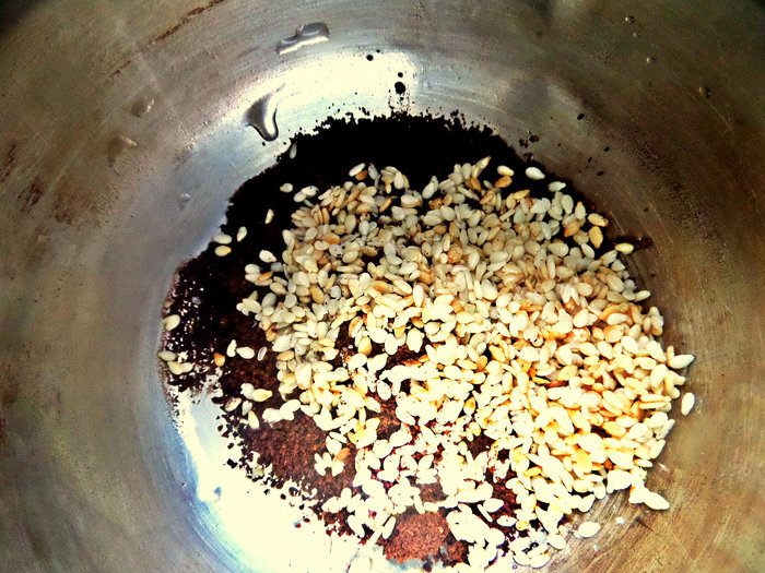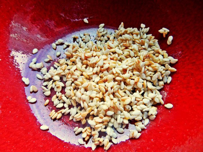 Кунжутные семечки заранее обжарить на сухой сковороде и можно хранить в закрытой ёмкости.