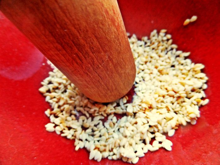 Для лучшего аромата потолочь семечки.