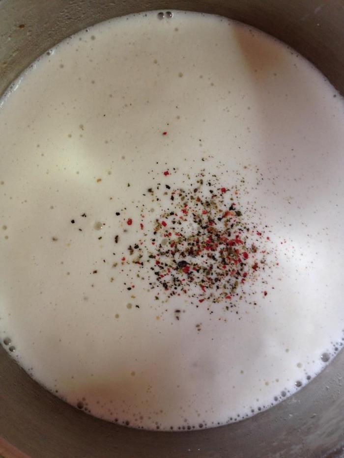 Возвращаем на огонь, добавляем соль, перец и дадим еще раз закипеть.