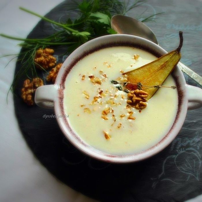 Очень простой, легкий и вкусный супчик для разнообразия вашего повседневного меню. Не бойтесь использовать фрукты в непривычных блюдах, они придают интересные акценты и дарят новые вкусовые ощущения! А ведь так здорово пробовать что-то новое! Для более сытного варианта супа добавьте в него на ваш выбор: отварное куриное мясо, сыр типа феты или брынзы (а любителям советую покрошить немного сыра с плесенью), несколько ломтиков обжаренного бекона или же просто гренки. Также воду можно заменить куриным бульоном или сливками.