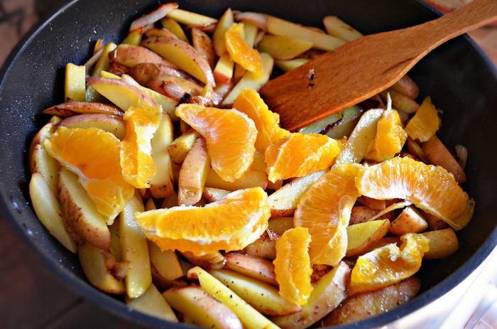 Предлагаю вам угоститься картофелем, запеченным с апельсином. Добавление апельсина придаёт картофелю восхитительный цитрусовый аромат и потрясающий освежающий вкус. Попробуйте, и вы не пожалеете!