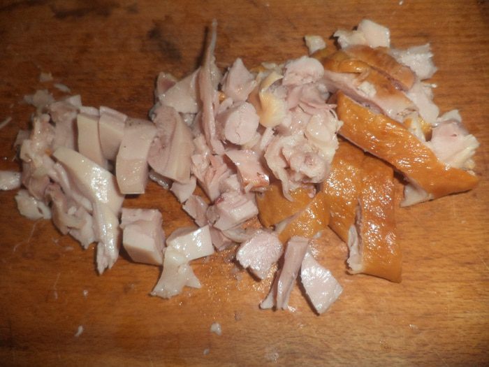 Салат из копчёной курицы, консервированной фасоли и маринованных шампиньонов