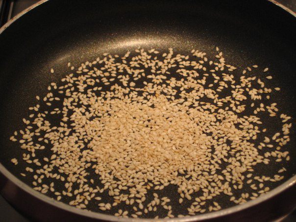 В сковороде разогреть 1 ст. л. оливкового масла, слегка обжарить раздавленную очищенную дольку чеснока, чеснок выкинуть.