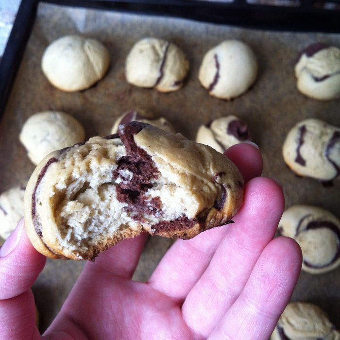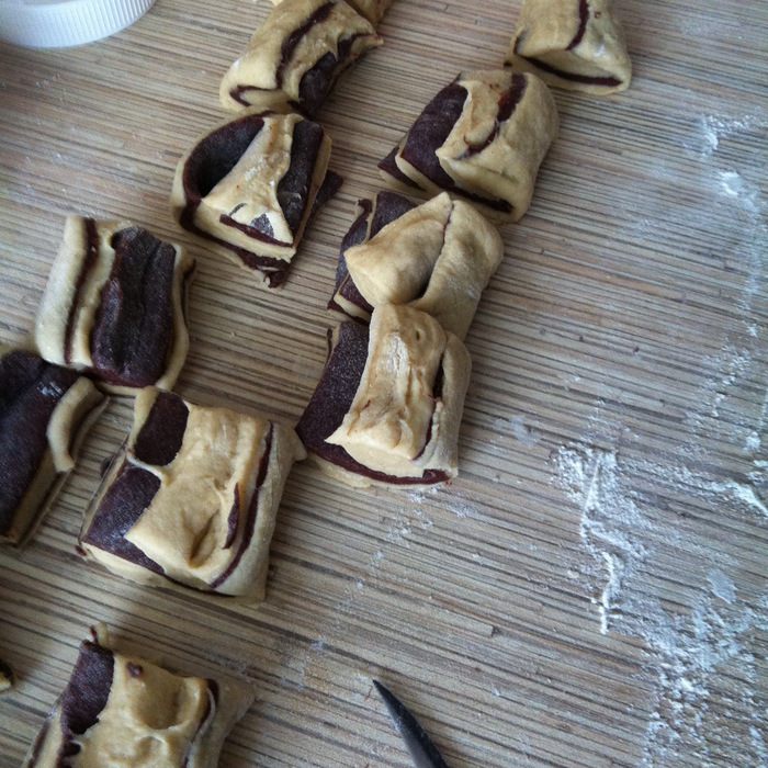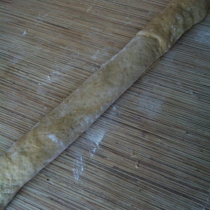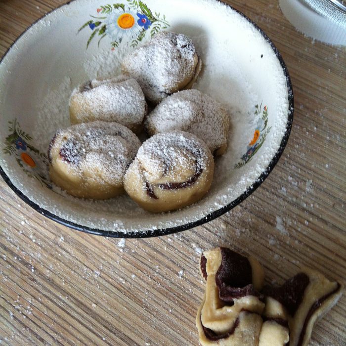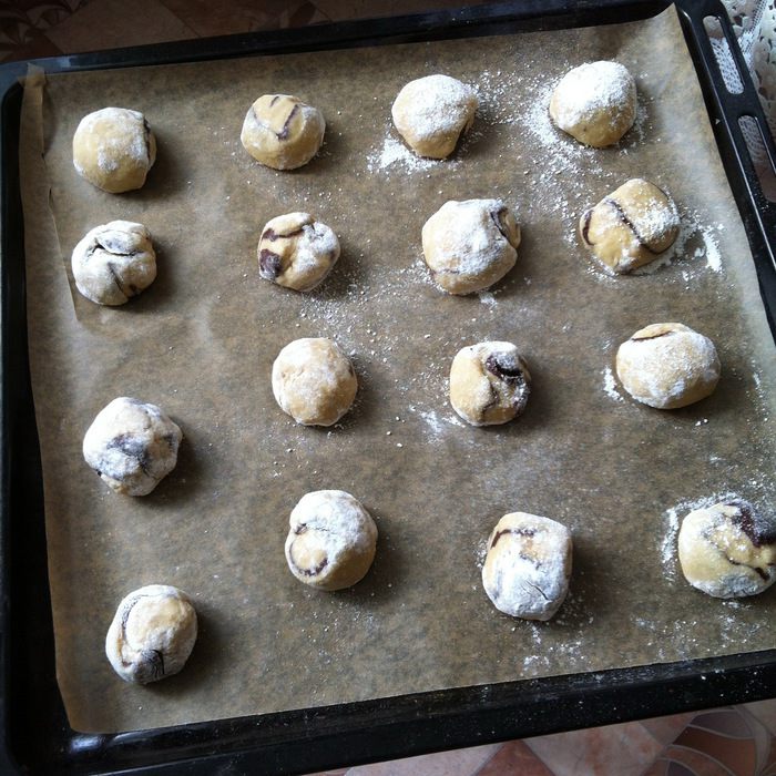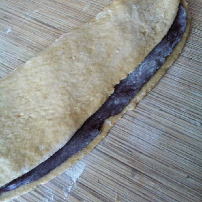 В миску с 2/3 теста добавьте корицу, ванильный сахар и 200 г муки, как и с какао-тестом замешиваем мягкое тесто, при необходимости добавляя по столовой ложке муки.