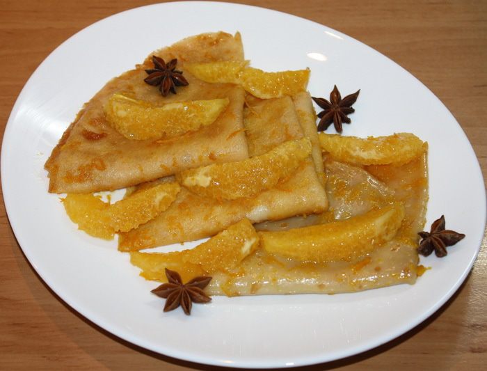 Подачу этого десерта принято готовить на глазах у ваших дегустаторов. Что я и сделала. Заранее напекла блины и подготовила апельсины, а когда пришло время десерта… Вот тут все и началось! Процесс фламбирования я делала при свечах в полумраке. Это придало особый шарм десерту и вечеру. А его вкус завершил интригу блинчиков фламбе!
