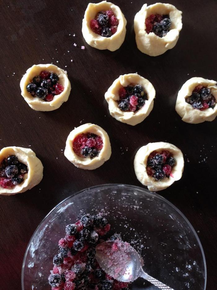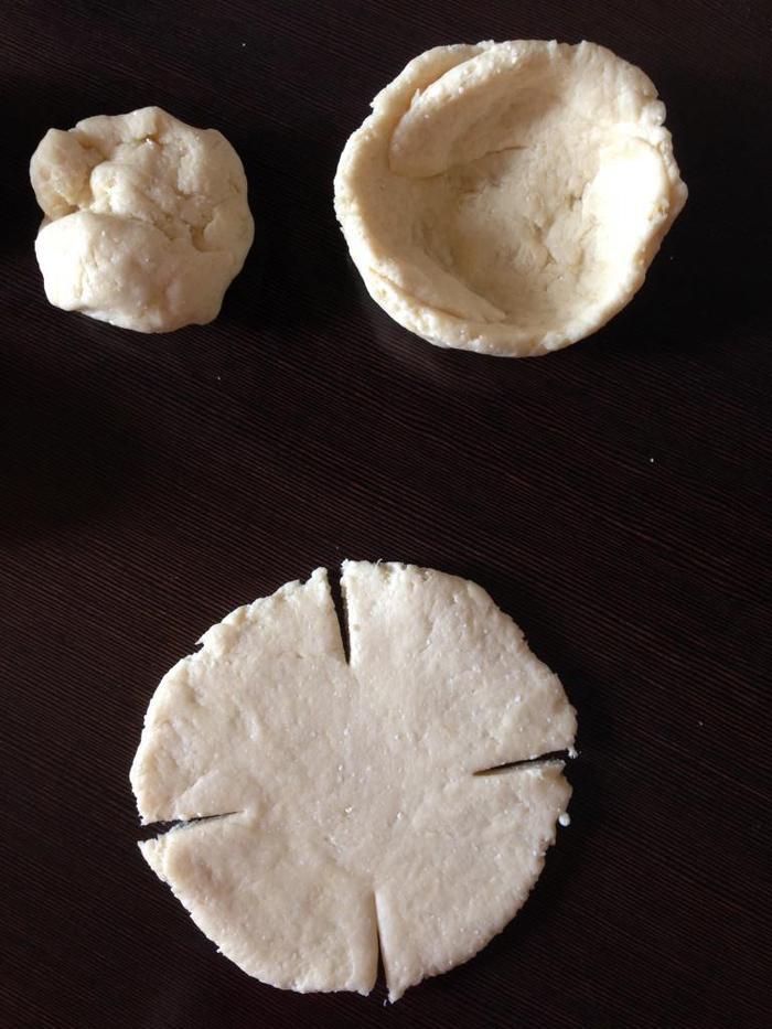 Из каждой части катаем шарик и раскатываем его в круглую лепешку, "сооружаем" из краев лепешки бортики.