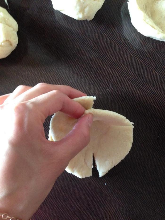 Делаю на лепешке с краев по 4 неглубоких разреза.
