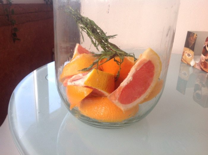 Фрукты помойте и нарежьте на дольки. Веточки тархуна помойте и обдайте кипятком, чтобы выпустить аромат.