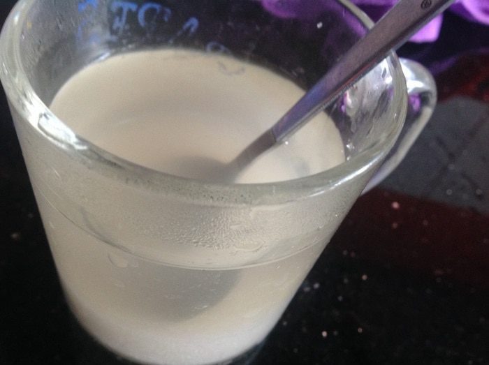 Сахар (у меня 100г) залейте горячей водой, и хорошо размешайте.