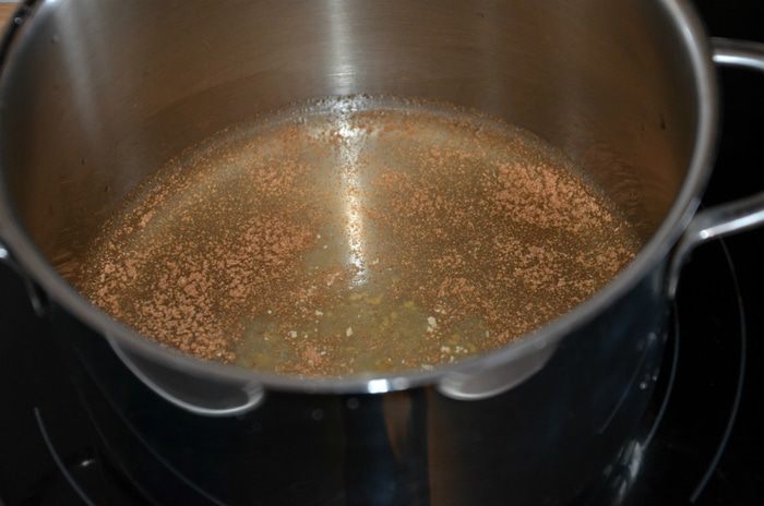В кастрюльку наливаем остатки воды (это около 30 гр) + 2 ст.л. персикового сиропа, специи, 1-2 ч.л сахара. Кипятим пару минут, пока сироп слегка не станет вязким. Выключаем. Даем специям настояться еще пару минут.