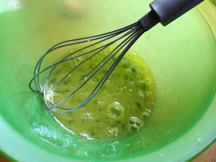 Яйца взбить венчиком с оставшейся солью.