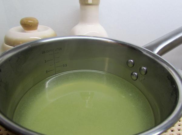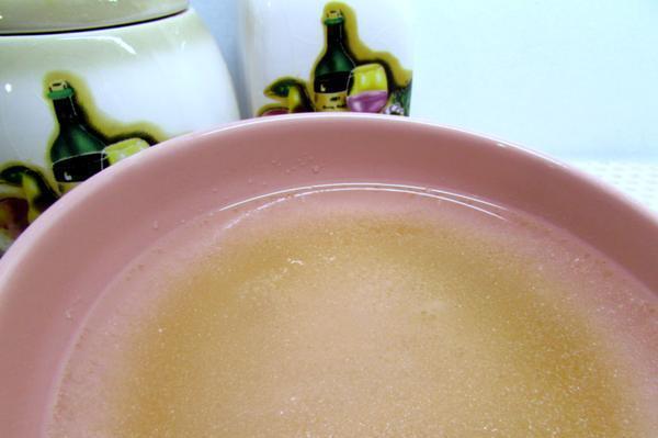 Желатин положить в миску, влить 1 стакан холодной кипячёной воды и оставить на 30 минут.