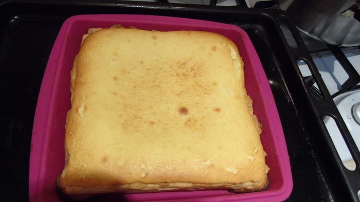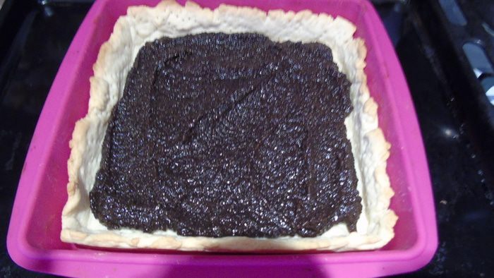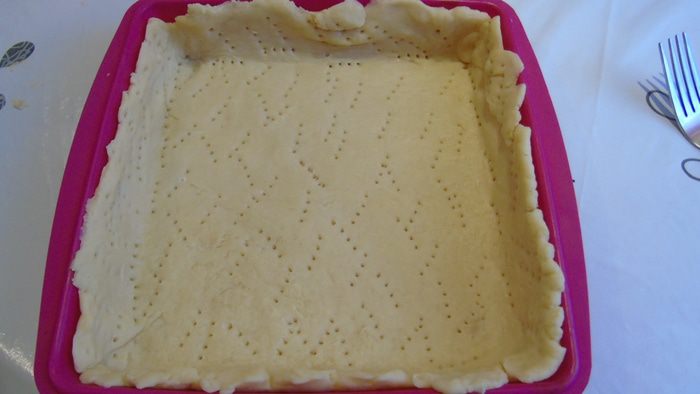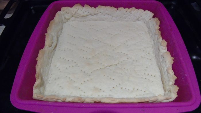 Раскатать тесто и выложить в форму у меня квадратная (19х19см) хорошо наколоть вилкой