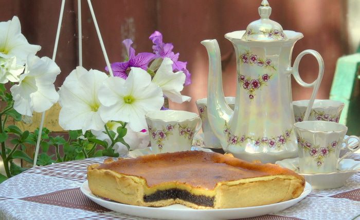 Хоть сейчас и самый разгар фрукты, но можно разнообразить и испечь вот такой обалденно вкусный маковый пирог со сметанной заливкой от И. Чадеевой