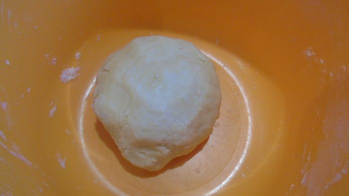 Влить 5-6 ст. л. ледяной воды и замесить и тесто.