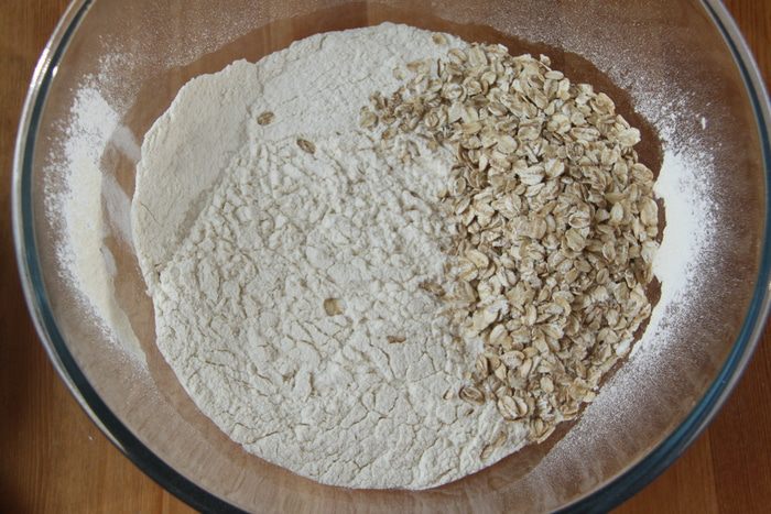 Замесить тесто. Оставить тесто в миске, накрыв пищевой плёнкой, на подъём на 2 часа.