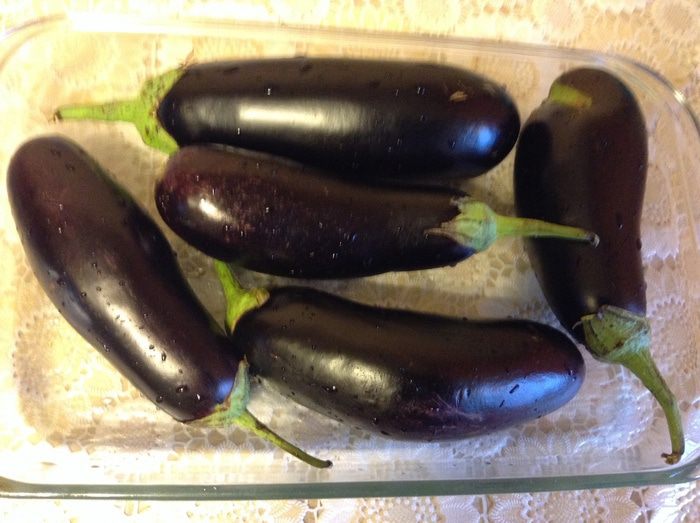 Баклажаны вымыть наколоть вилкой, поставить в духовку при 200С на 30 минут.