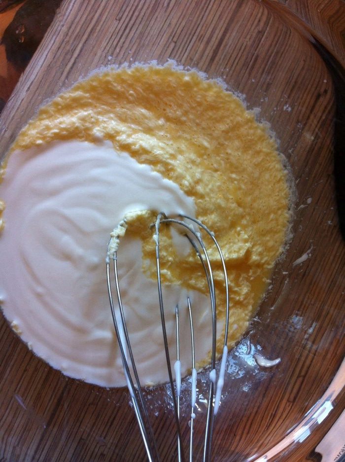 Для теста соединить яйцо, мягкое масло и сметану.