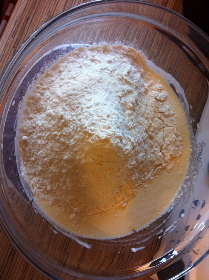 Добавить соль, сахар, соду муку.