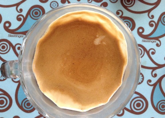 Очень своеобразный кофе, соленая паста, шоколад и кофе. Получается очень сытный напиток, который имеет яркий вкус арахиса. Мне кажется, что арахис даже заглушает вкус кофе (хочется верить, что это моя идея).