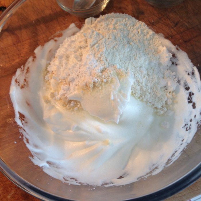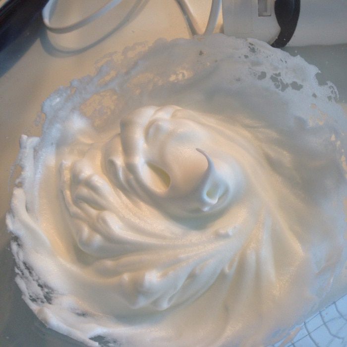 Белки взбить до легких пиков,всыпать сахар и взбить до устойчивых пиков.