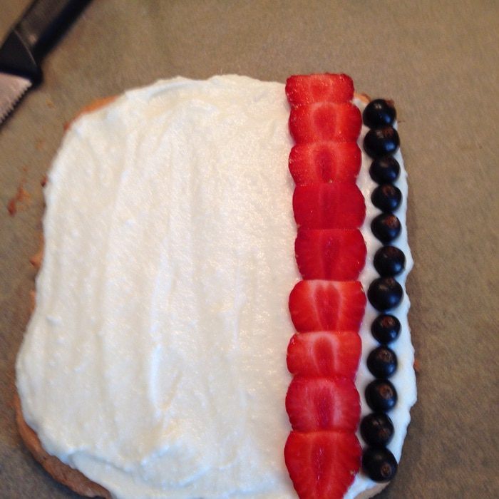 Крем: рикотту смешать с сахаром и протереть несколько раз через сито. Ягоды помыть и обсушить
