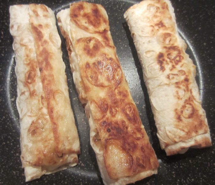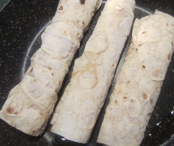 Выкладываем трубочки (швом вниз) на разогретую сковороду, смазанную маслом, жарим до румяной корочки.