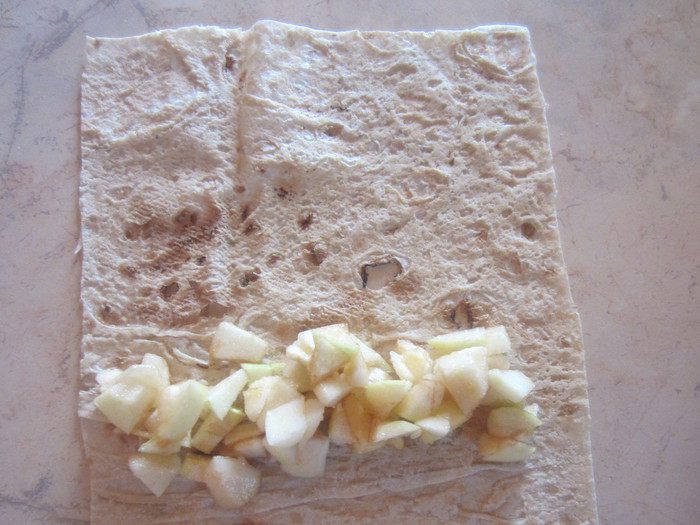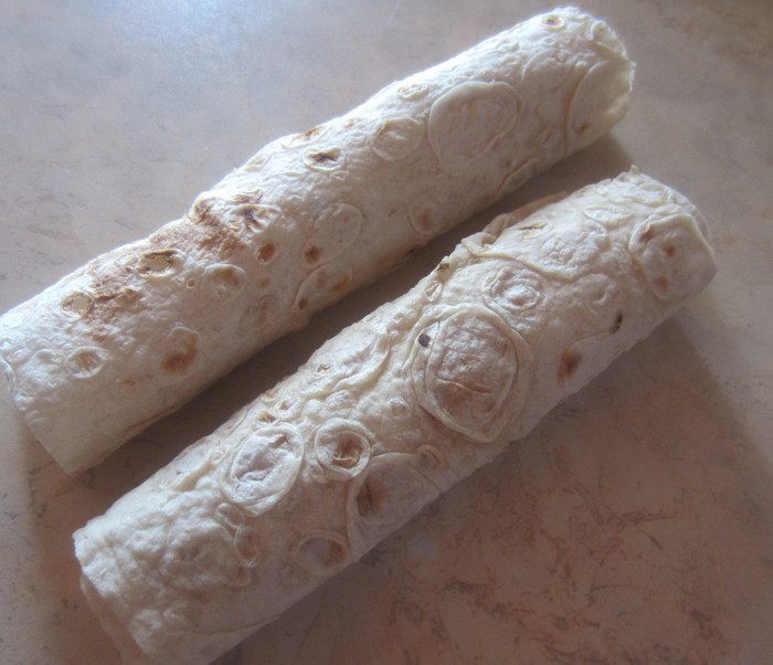 Выкладываем начинку на лаваш и закручиваем в трубочку.